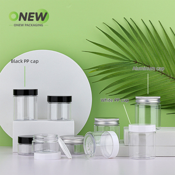 Recipiente para latas de plástico para animais de estimação, 25g, frascos transparentes para cosméticos, 6 onças, com tampa, frasco de qualidade alimentar